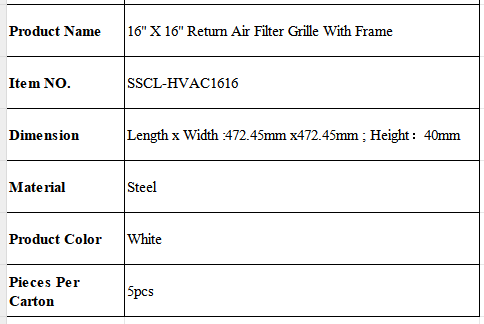 16" X 16" Return Air Filter Grille With Frame