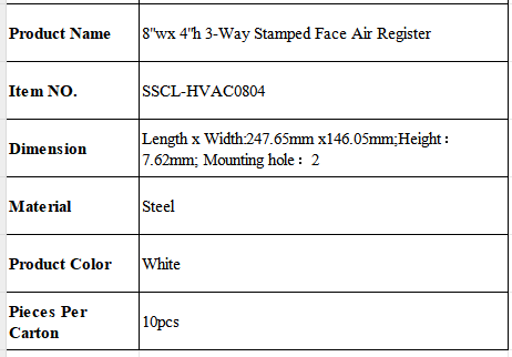8"wx 4"h 3-Way Stamped Face Air Register