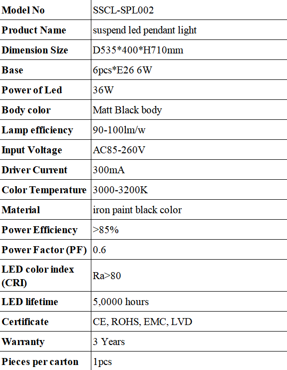 1. Suspend led pendant light ,Iron paint black color.