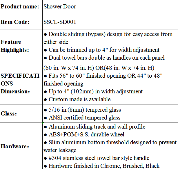 Size Selection: single shower doors or multi-panel designs to fit various openings